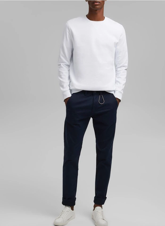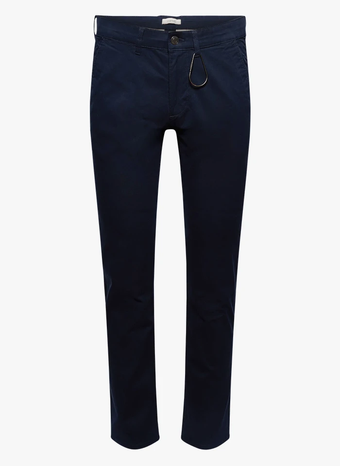 - Un basique tendance, indispensable dans tout dressing qui se respecte : le chino en coton stretch doté d´un anneau porte-clés pratique.