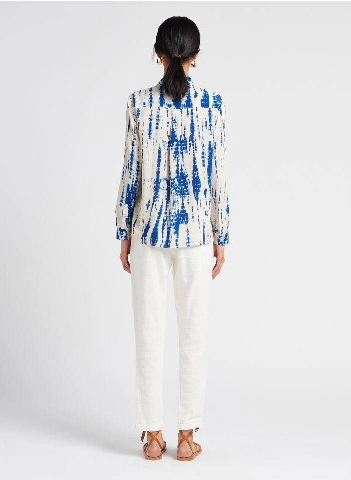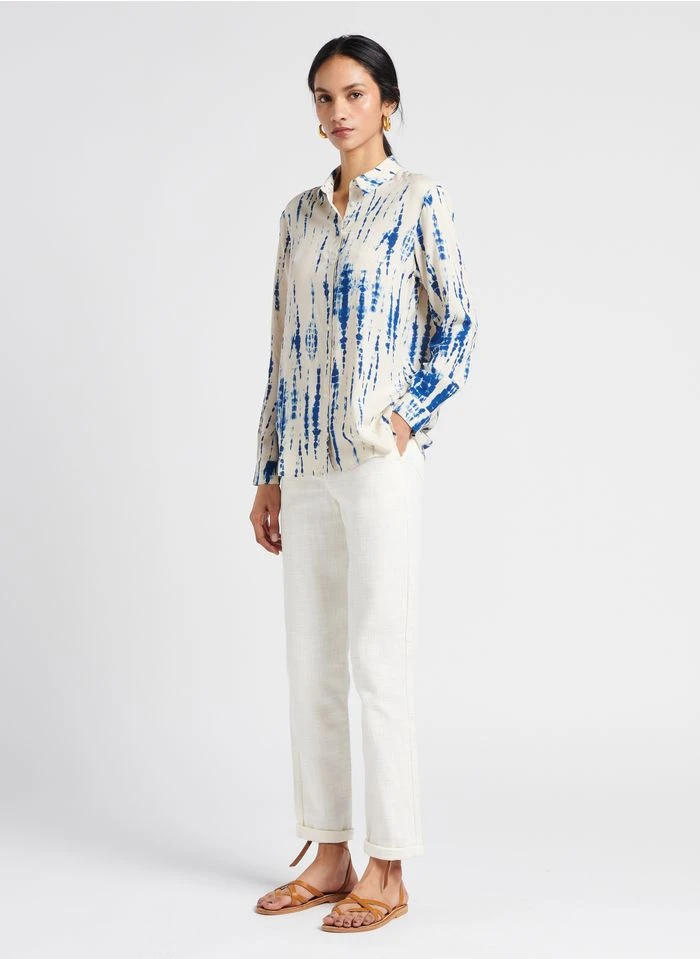 Ce modèle est présenté avec Chemise fluide imprimé tie and dye by MAISON 123