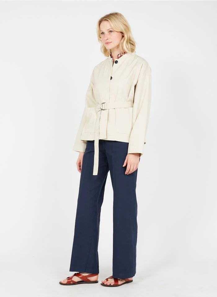 Pantalon large taille haute en coton et lin by Pomandere pour Femme.