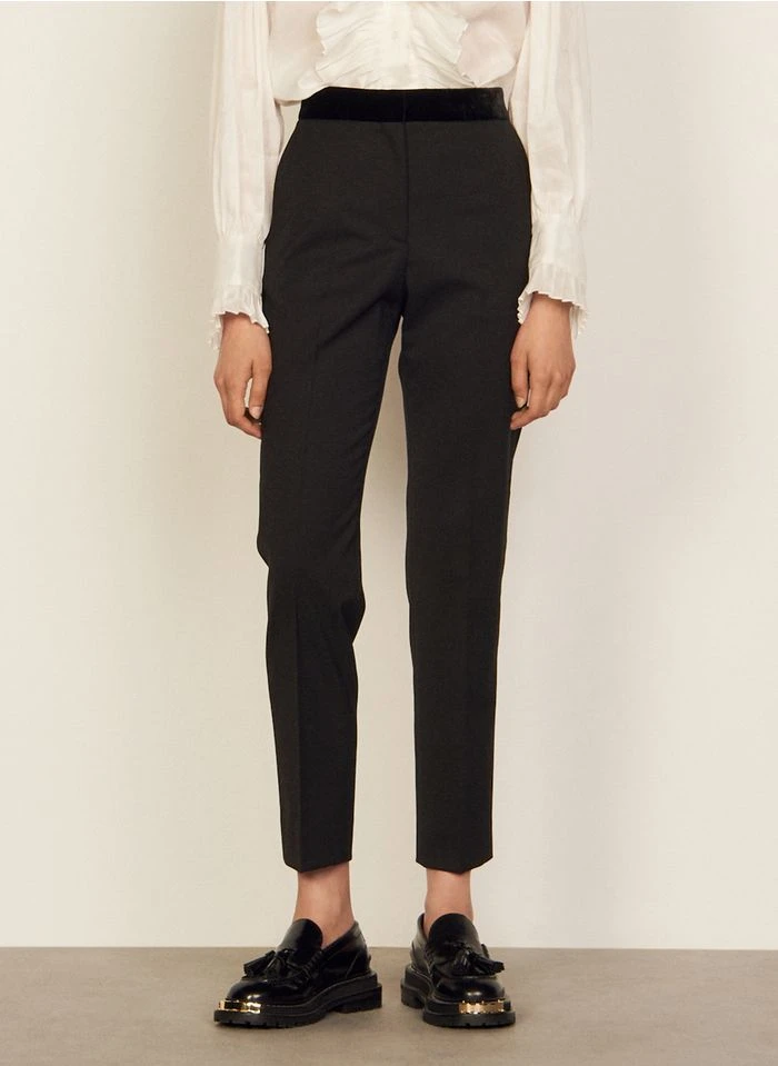 Pantalon droit en laine mélangée by Sandro pour Femme.