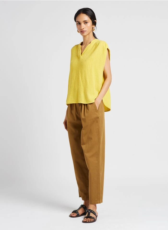 Ce modèle est présenté avec Blouse ample col V en coton by CHLOE STORA
